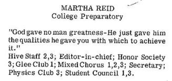 Following her graduation from Hellertown Lower-Saucon High School in 1964, Dr. Reid received a Bachelor of Arts degree in English, graduating Magna Cum Laude, and a Master of Arts in Teaching in Secondary English from Harvard University. She also earned a Master of Arts degree and a Ph.D. degree in English from Tufts University in Medford, Massachusetts. The Morningside College in Sioux City, Iowa, awarded her an honorary Doctor of Humane Letters degree in 2014.